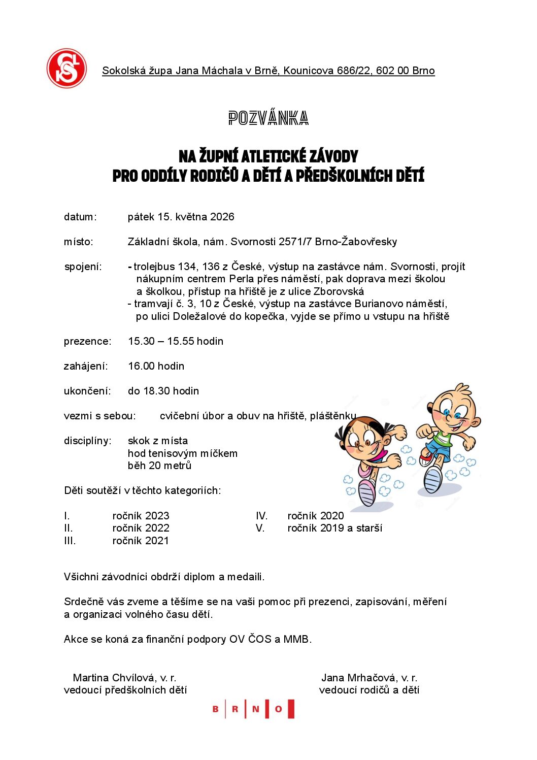 POZVÁNKA na župní atletické závody pro oddíly rodičů a dětí a předškolních dětí